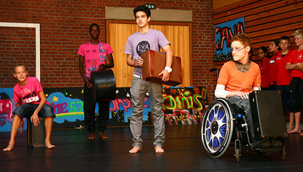 Vier Bremer Schulen sind mit dabei. Eine Woche lang dreht sich für einen ganzen Jahrgang der Klassen 8 -10 alles um das Thema Integration. Der Morgen beginnt mit einer gemeinsamen Tanzprobe, danach arbeiten die Schüler mit Choreographen, Akrobaten, Musikern, Bühnenbildnern in Werkstätten an der gemeinsamen Produktion: Tanztheater, Bühnenbild, Musik. Am Ende der Woche steht eine Tanzproduktion von etwa 20 Minuten.
